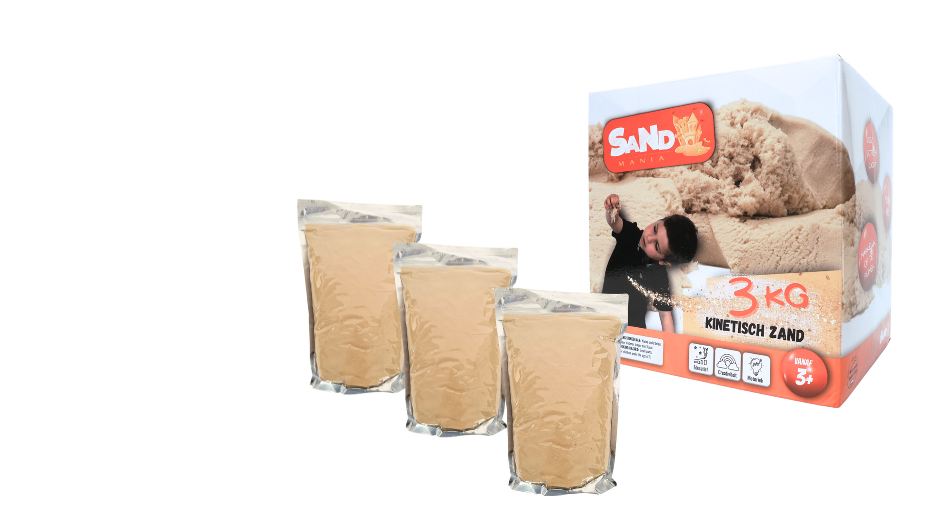 Verschillende merken kinetisch zand geprobeerd, maar het zand van Sand Mania is veruit favoriet! Bouwwerken storten niet in, wat bij andere merken wel snel gebeurt. Het plakt niet aan de handen, verkruimelt niet, heeft een mooie naturel zandkleur en is geurloos. Blije kids, blije ouders. Niet heel goedkoop in aanschaf, maar voor ons geen ander merk meer.